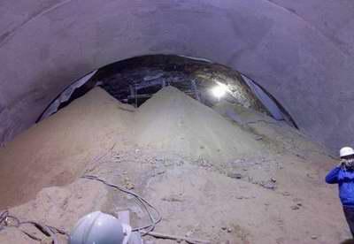 圖2 上白隧道水平旋噴未施工時(shí)洞內(nèi)漏砂現(xiàn)場(chǎng)